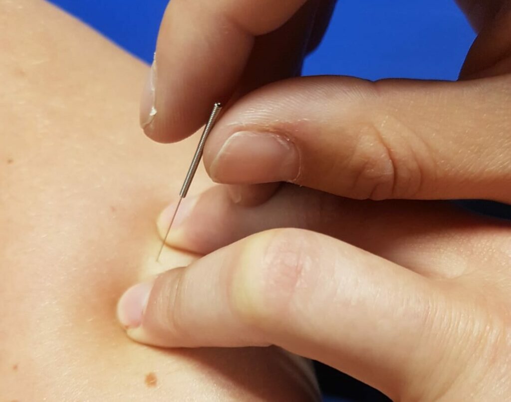 Dry needling is een spierontspannende techniek waarbij een steriele, niet-holle naald wordt gebruikt. De naald wordt via een plastic buisje in de huid ingebracht en dringt vervolgens de spier binnen. Deze techniek kan uitsluitend worden toegepast door fysiotherapeuten die een gespecialiseerde cursus dry needling hebben gevolgd.